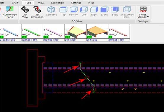 cncKad/AutoNest V23管件 – 我們的管件部分也經由自動剪切管材、支援管件餘料、在自動排版裡合併末端的餘料、圓管和矩形管件轉角的管材分割而得到極大的改進。